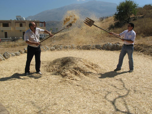 ...το σιτάρι το ανακατεμένο με άχυρα και το πέταγαν ψηλά. Ο καρπός, ως πιο βαρύς, έπεφτε κάτω. Τα άχυρα, που ήταν πανάλαφρα, τα έπαιρνε ο αέρας πιο μακριά.